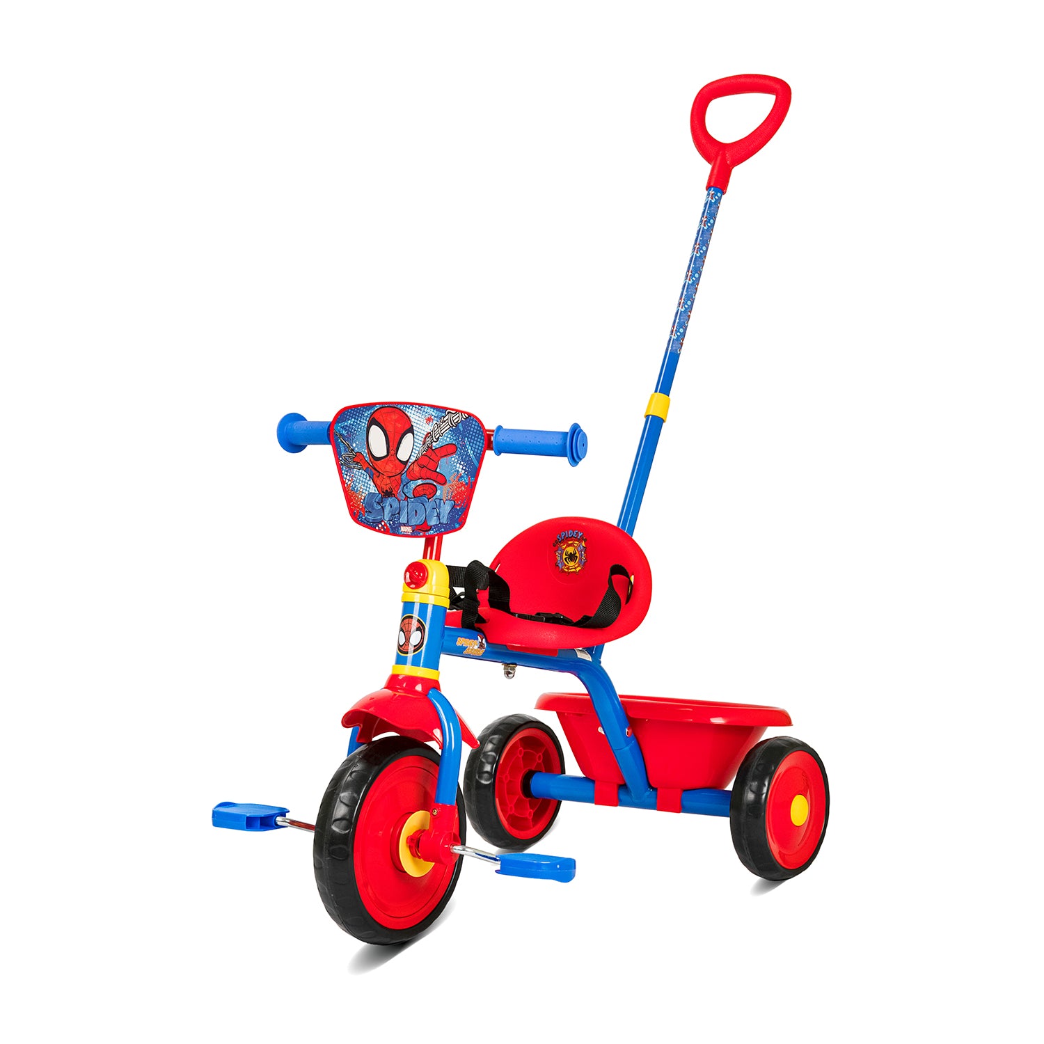 Introducing the Spartan Marvel Spiderman Tricycle with Pushbar – a remarkable combination of comfort and safety, tailored for your little adventurers. This tricycle sets the stage for an enjoyable and secure riding experience, perfectly designed for small riders. A standout feature is the innovative front pedal equipped with a free-wheel mechanism. This ingenious addition permits effortless stroller-like pushing, while the pedals remain motionless.